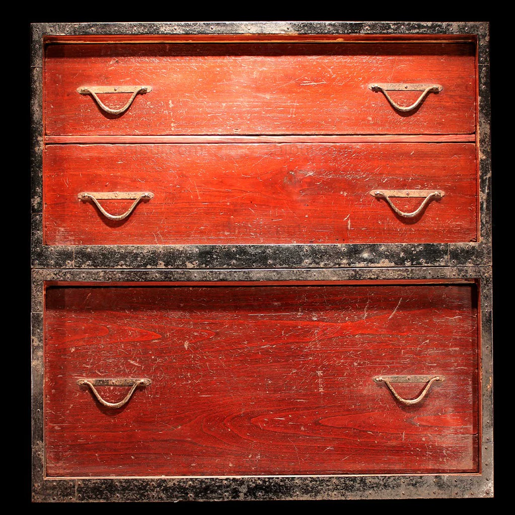 Hangai - Two Section Ships Clothing Chest Japanese Antique Tansu Iron Hardware