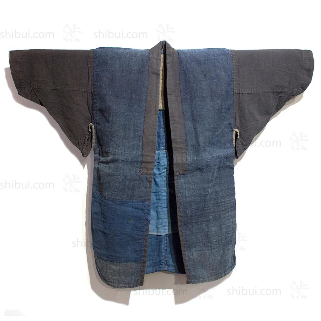 Jacket of hand sewn, and hand woven cotton, repaired with fragments of other indigo dyed cottons
