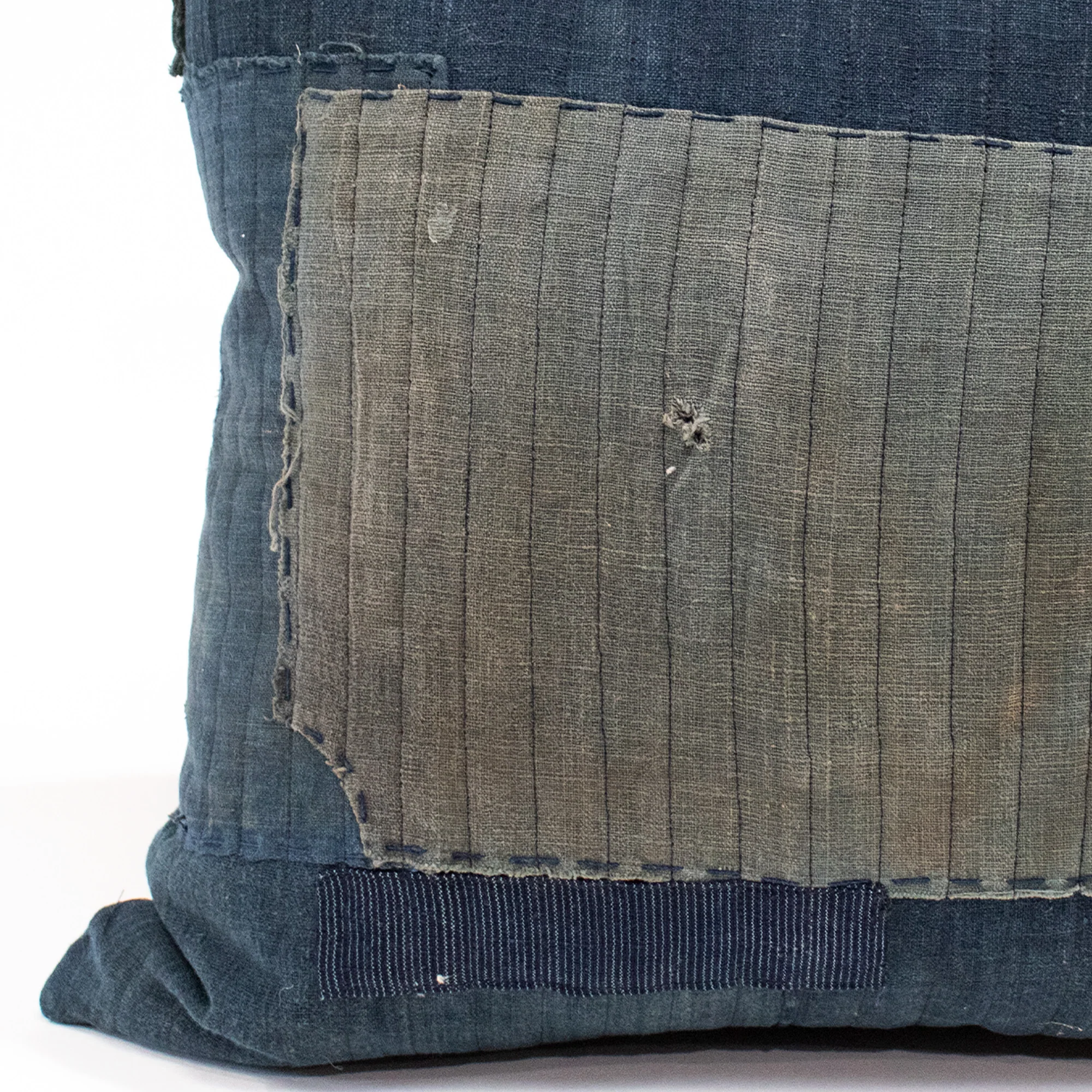 Vintage Japanese Indigo Cotton Boro Patchwork Pillow